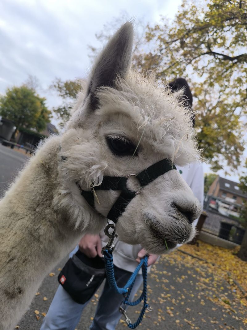 Die Kinder der Betreuung "Mühlenmäuse" konnten sich in den Herbstferien über den Besuch der tierischen Gefährten des Dycker Alpakahofs "Dycker Alpakas" freuen.